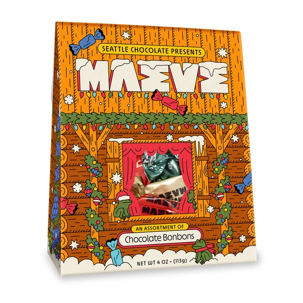 Some cabins have fireplaces; this one has chocolate. Birthday Cake, Espresso, Milk Chocolate, and Moon Rocks bonbons fill this rustic hideaway, making it the sweetest spot in the forest. With a log exterior and a sugar-fueled interior, it’s the kind of gourmet chocolate gift box that makes “roughing it” feel suspiciously like holiday luxury.